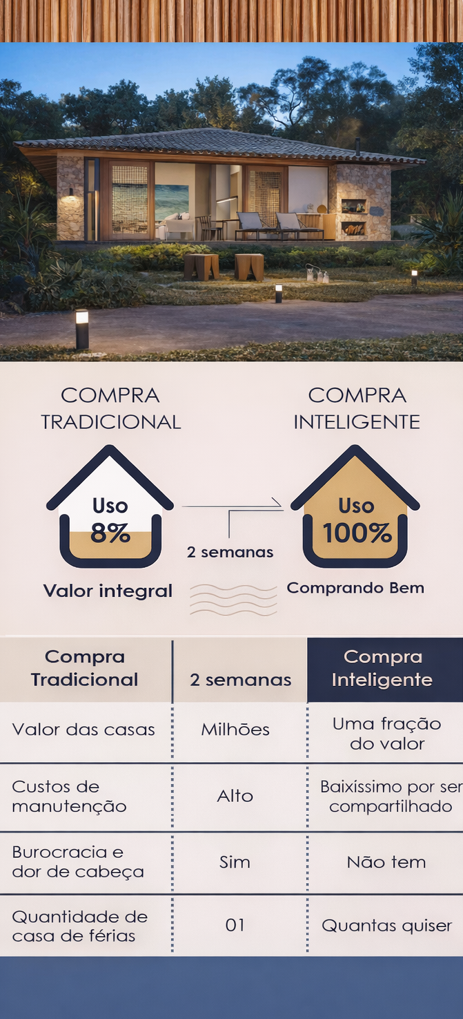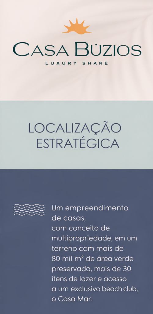 Na Casa Búzios, você adquire uma fração do imóvel, garantindo o direito de uso por períodos determinados ao longo do ano, com custos compartilhados e toda a gestão feita de forma profissional.